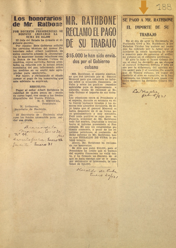 Se pagó a Mr. Rathbone el importe de su trabajo.