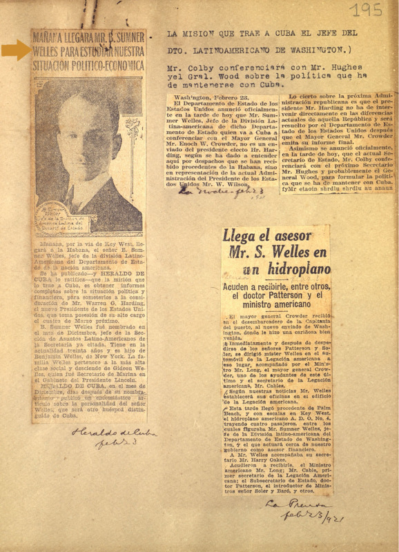 Mañana llegará Mr. B. Sumner Welles para estudiar nuestra situación político-económico.