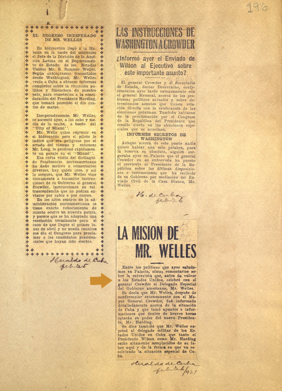 Breve reseña de la reunión sostenida entre el general Crowder y el delegado especial del gobierno americano, Mr. Welles.
