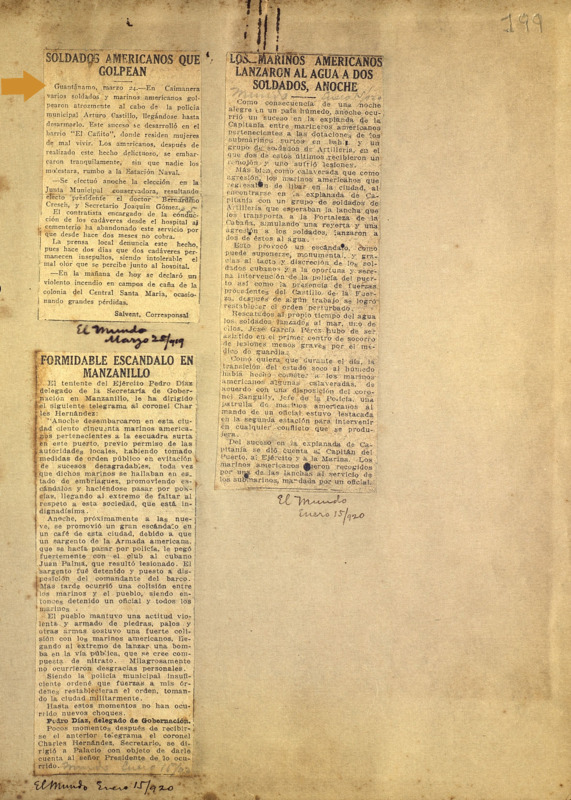 Cablegrama fechado en Guantánamo, marzo 24, que reseña la agresión contra el cabo de la policía municipal de Caimanera, Arturo Castillo, sin que fueran molestado por ello.