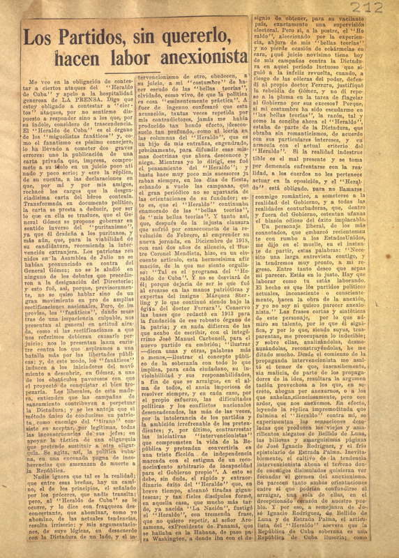Respuesta a ciertos artículos publicados en el 2Heraldo de Cuba" en los que describe y analiza la situación política del país. También brindaINFORMACIÓN sobre la historia y objetivos del órgano de prensa antes mencionado.