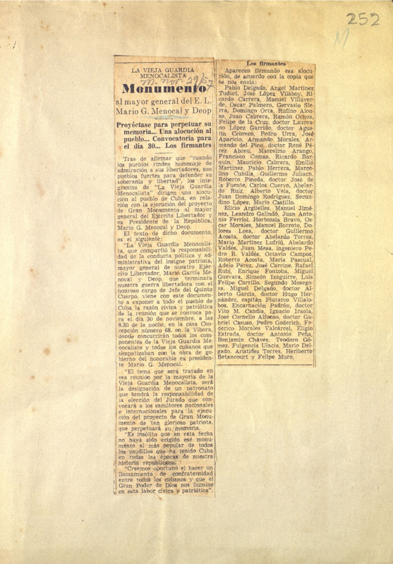 Monumento al mayor general del E. L Mario G. Menocal y Deop.