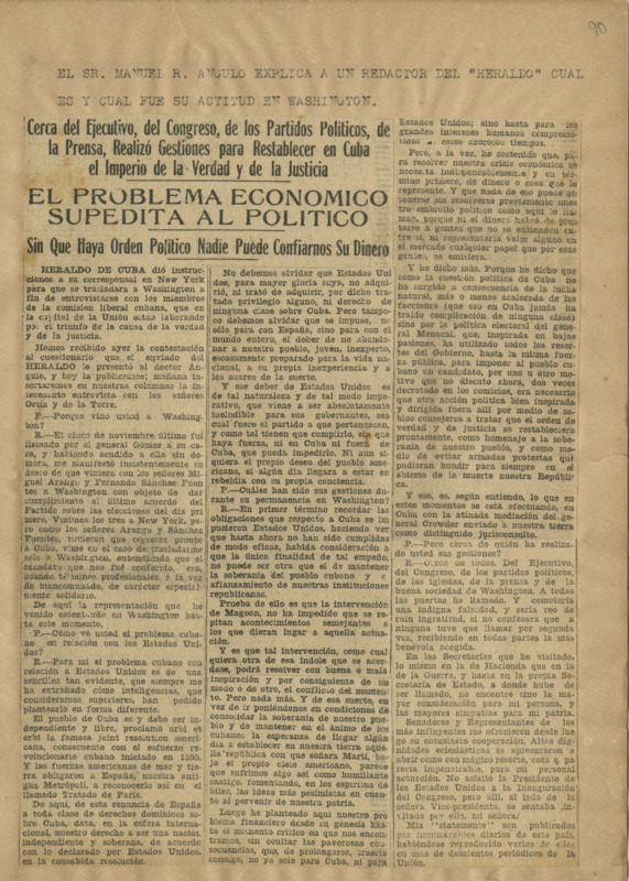 El Sr. Manuel R. Angulo explica a un redactor del "Heraldo" cual es y cual fue su actitud en Washington.
