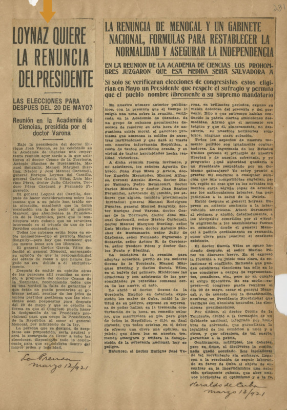 La reseña contiene la reunión en la Academia de Ciencias, presidida por el Dr. Varona.