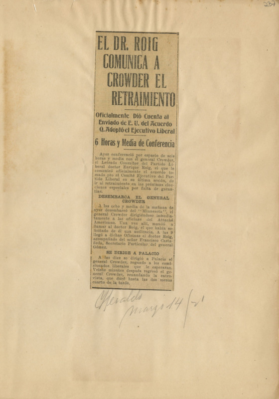 Oficialmente dio cuenta el enviado de E.U. del acuerdo que adoptó el Ejecutivo Liberal.