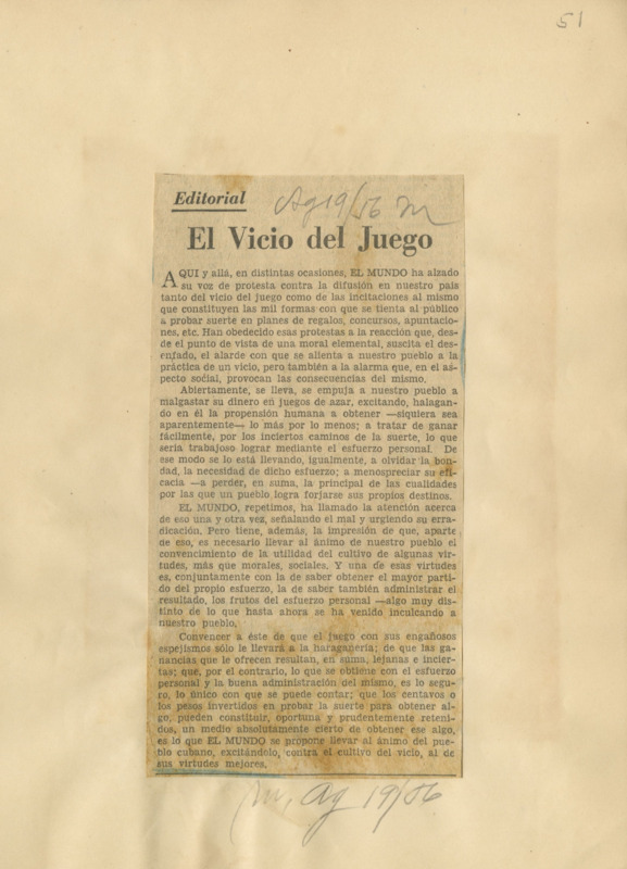 Editorial : el vicio del juego.