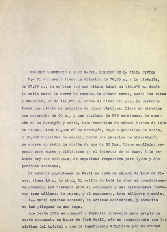 Mecanuscrito. Datos de la estatua erigida a su nombre en la Plaza Cívica.