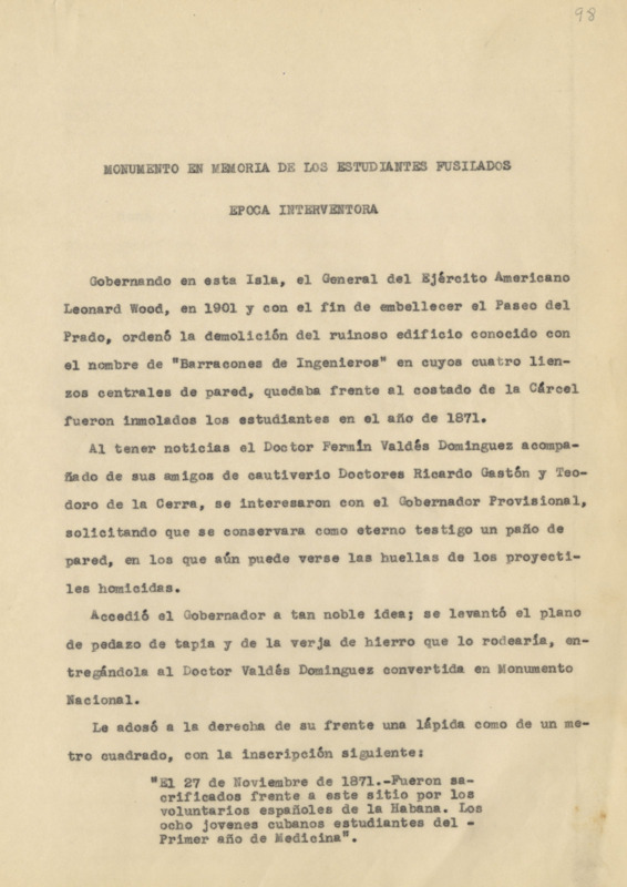 Monumento en memoria de los estudiantes fusilados : época interventora.
