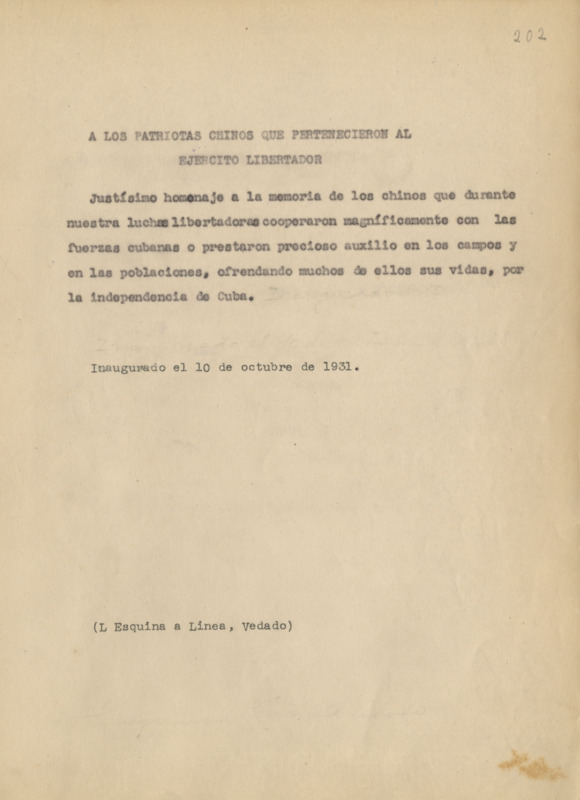 A los patriotas chinos que pertenecieron al Ejército Libertador.
