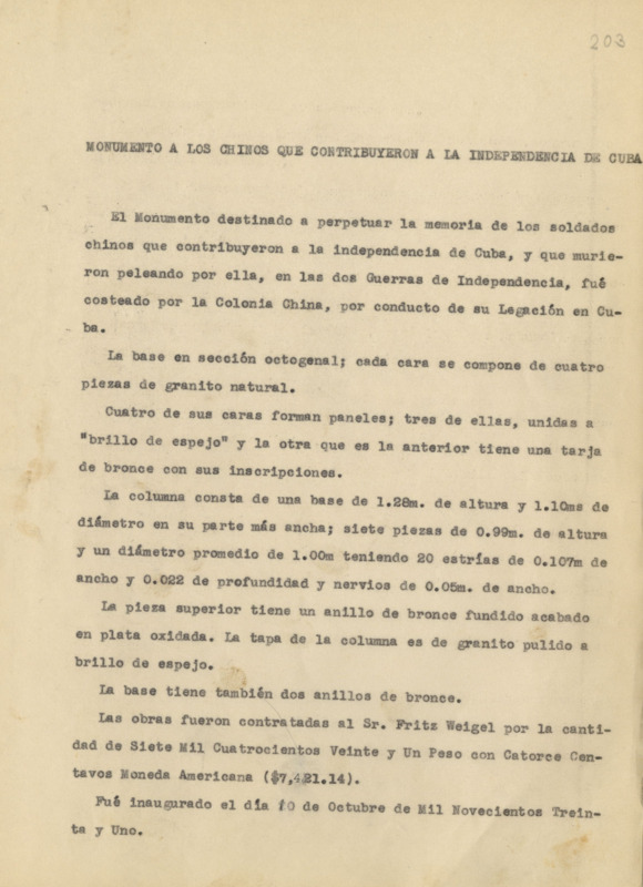 Monumento a los chinos que contribuyeron a la independencia de Cuba.