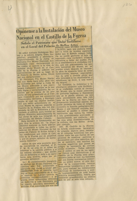 Opónense a la instalación del Museo Nacional en el Castillo de la Fuerza: señala el Patronato…