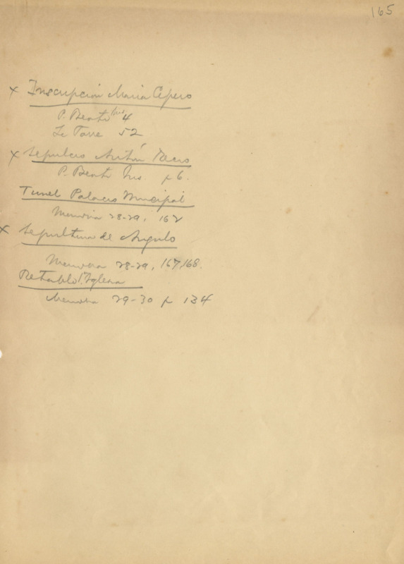 [Inscripción María Cepero ; sepulcro Antón Recio ; túnel Palacio Municipal ; sepultura de Angulo ; retablo de iglesia.]