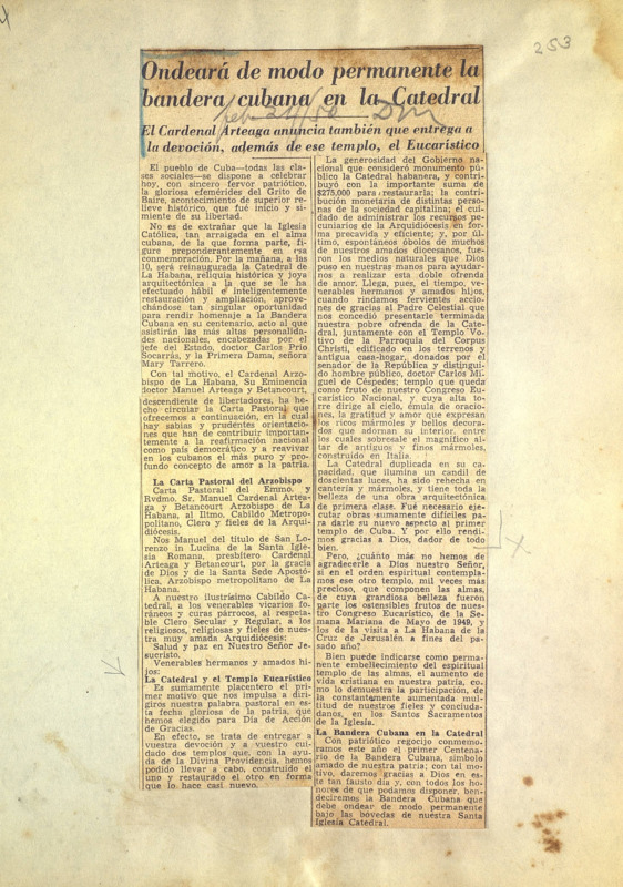 Ondeará de modo permanete la bandera cubana en la Catedral: El Catedral Arteaga anuncia también que entrga a la educación, además de ese templo, el Eucarístico.